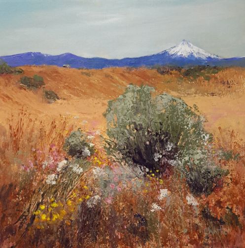 I’ve been trying out a few new gels and pastes lately in my acrylic paintings and having some fun. Here’s a 30 x 30 cm canvas I just finished using some clear tar gel and molding paste to help create that tangle of flowers and weeds in the foreground. Will be trying a few more ways of using the gel I’m sure.