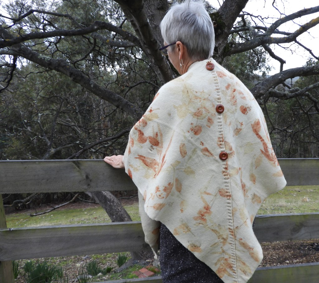 I’ve been discovering the joys of ecoprinting on vintage woolen blankets. I’d already been working with silk and cotton but had been wanting to try some wool which is either very expensive if new or difficult to find if recycled . Vintage blankets are a good way to get a decent amount of yardage at a reasonable price for the beginner. They’re hard to come by so when I get my hands on one it’s exciting planning what to make with it.