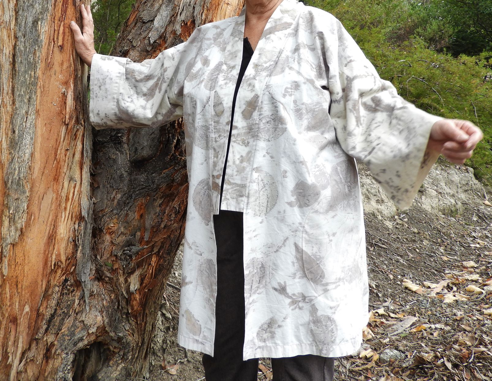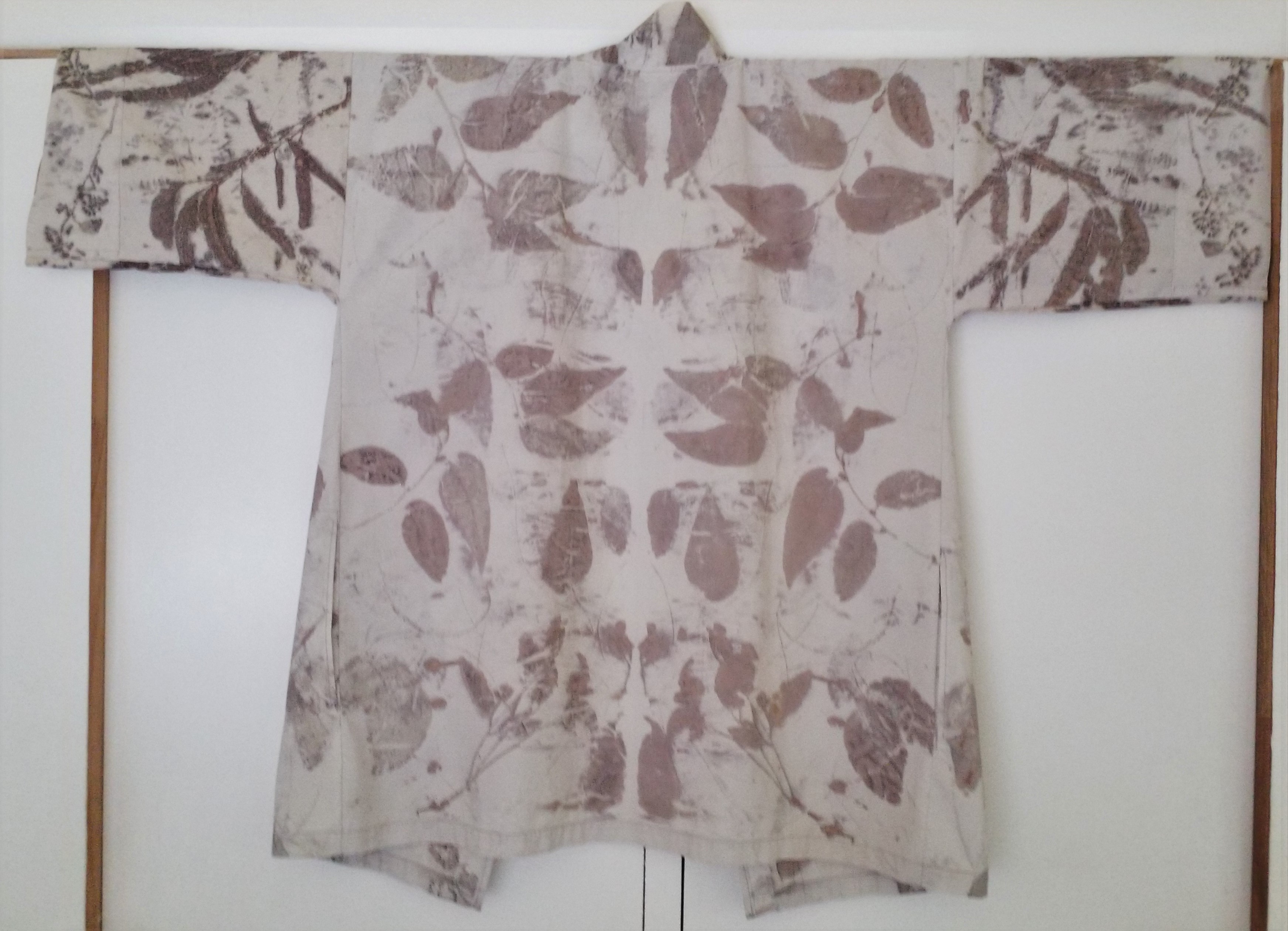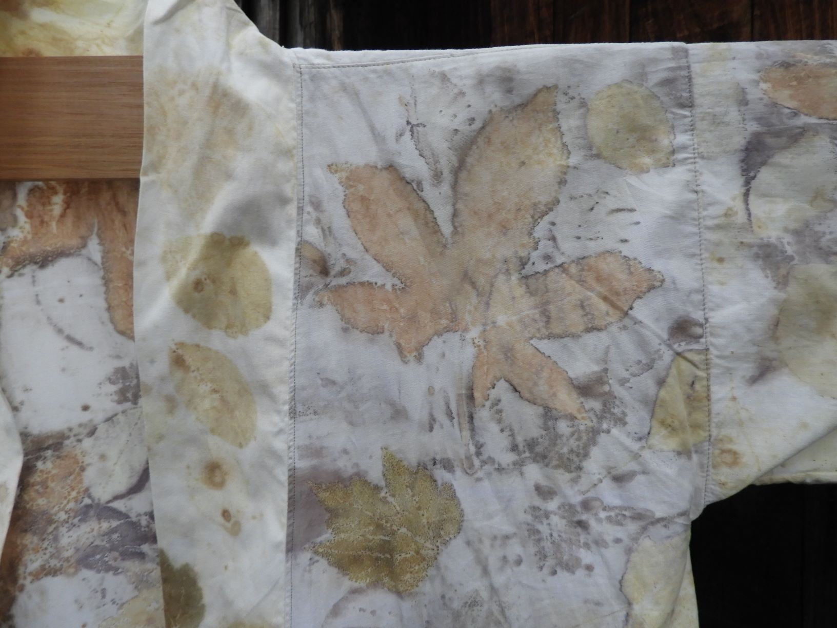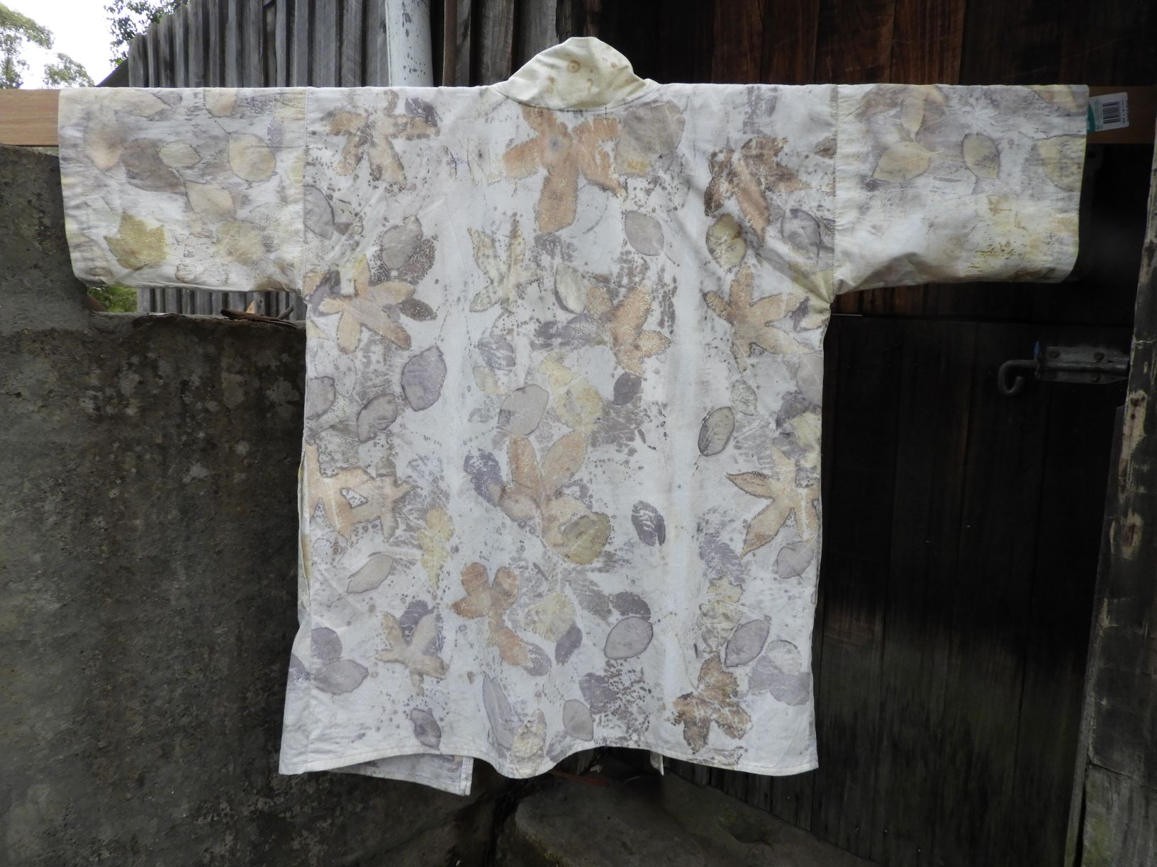 I’m a big fan of upcycling and ecoprinting with natural plant dyes and leaves so it was a small leap from seeing some quality cotton bed linen at the local thrift shop to turning it into an ecoprinted kimono.