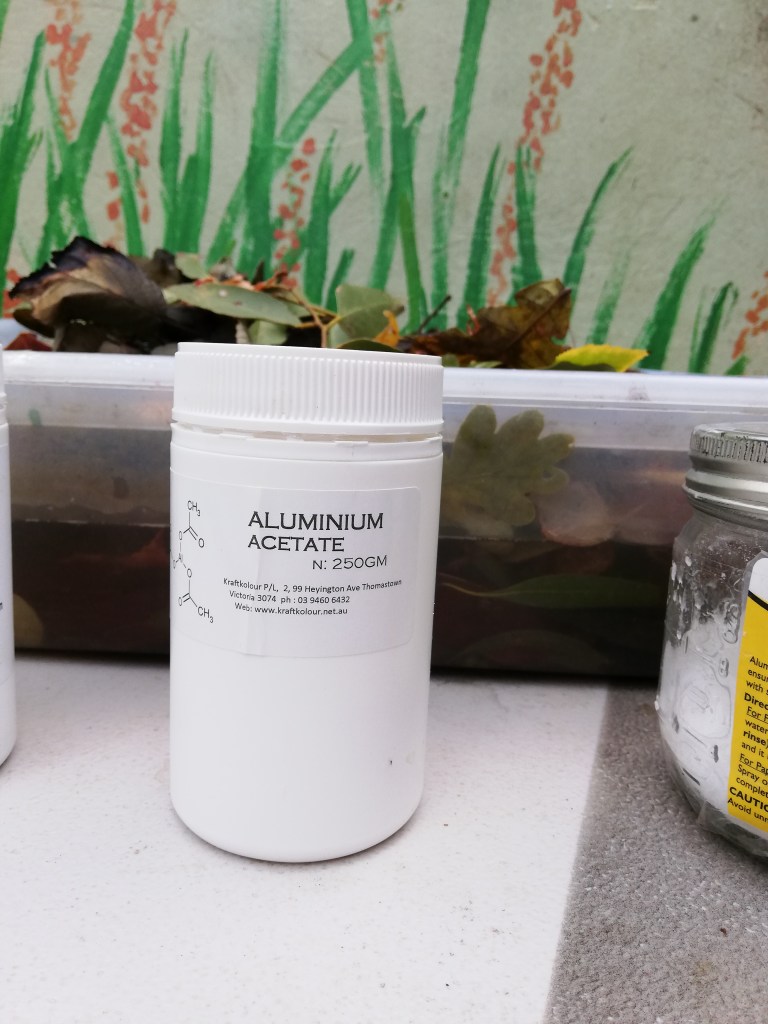 I generally use Aluminium Acetate dissolved in a pot of hot water and soak the fabric for 24 hours. Then I rinse, spin dry to remove most of the moisture and get down to the fun of adding the leaves.