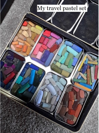 Because I’ll be flying up and then walking from the accommodation to the convention centre I started thinking about what sort of kit I could take that would be light enough to carry yet hold a decent amount of pastels and a half sheet size paper for the two workshops I’m booked into.