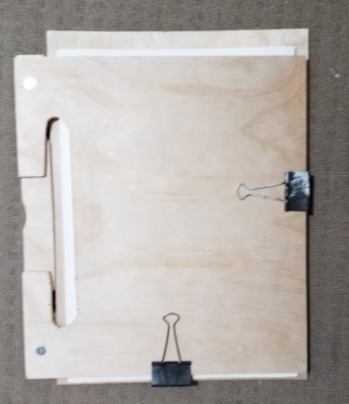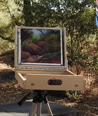 I also made a set for my light tripod that has an easel attachment with adjustable panel holders will take different size canvases and boards. I can set up my small stay wet acrylic travel palette on the shelf along with a collapsable water container and my brushes. I will probably drill some brush holder holes in the tray later on.