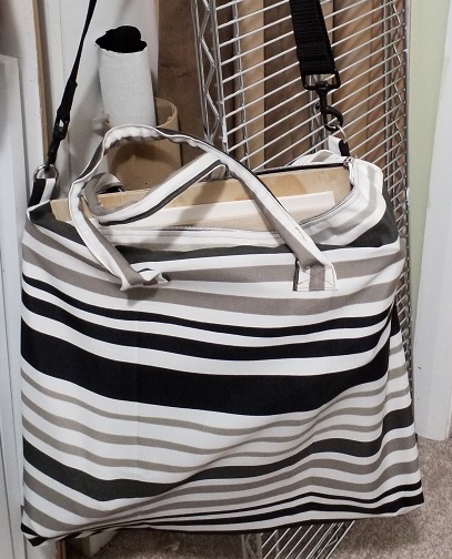 It packs into a bag I made for it with a shoulder strap and carry handles.