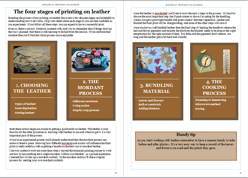 It contains everything I teach in my workshops and a lot extra and you can see some sample pages below.