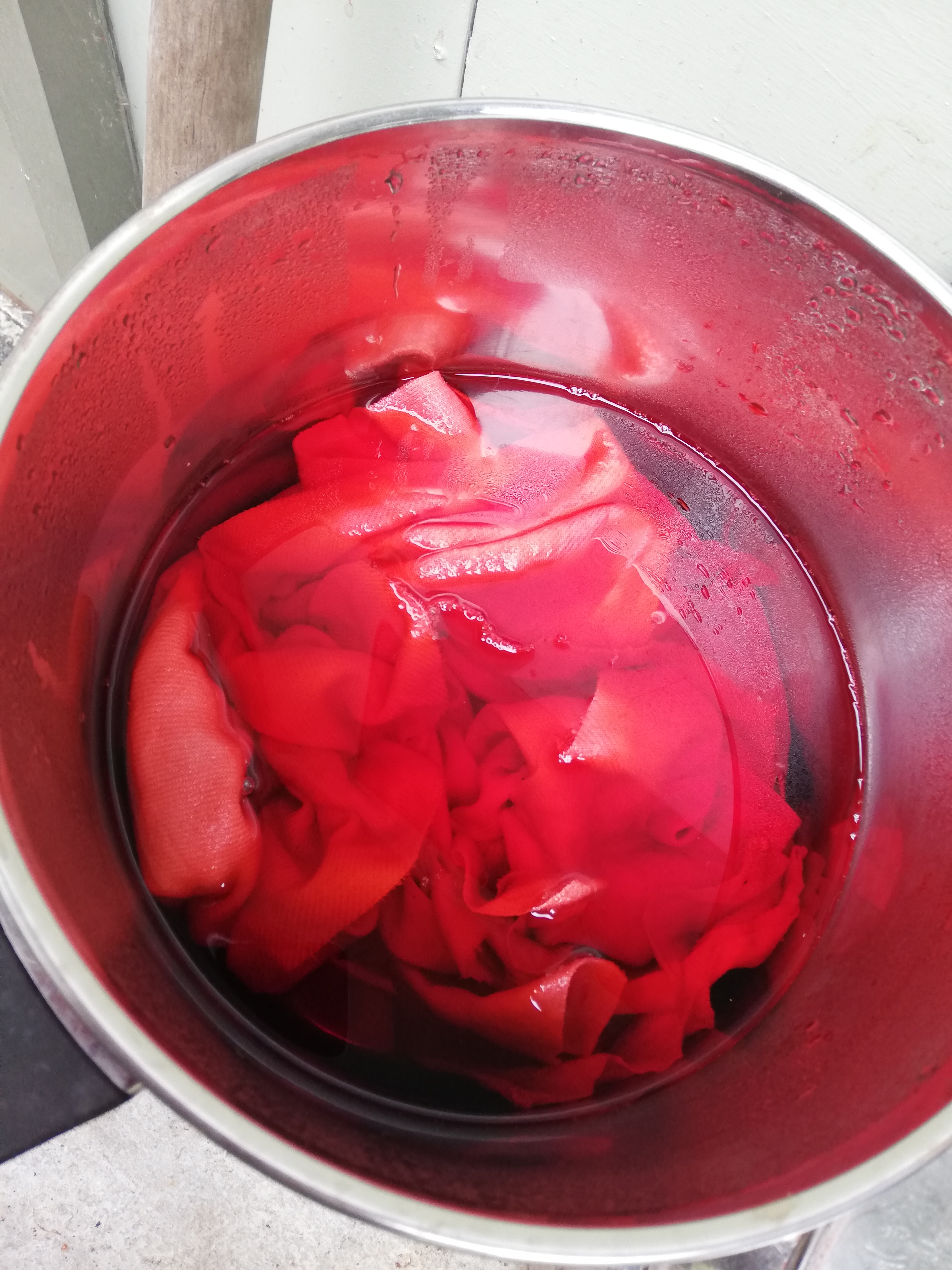 The dyes I chose were Logwood, Cochineal and Fustic. They are all relatively inexpensive but give lovely colours and combine well. Fustic and cochineal are solid lightfast dyes and with a little added iron logwood has relatively good lightfastness as well.