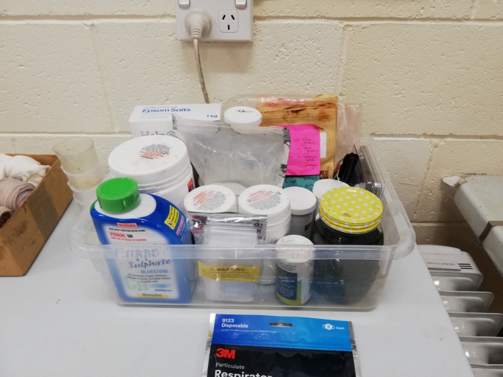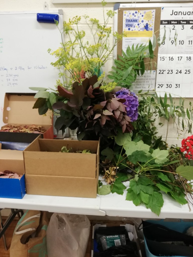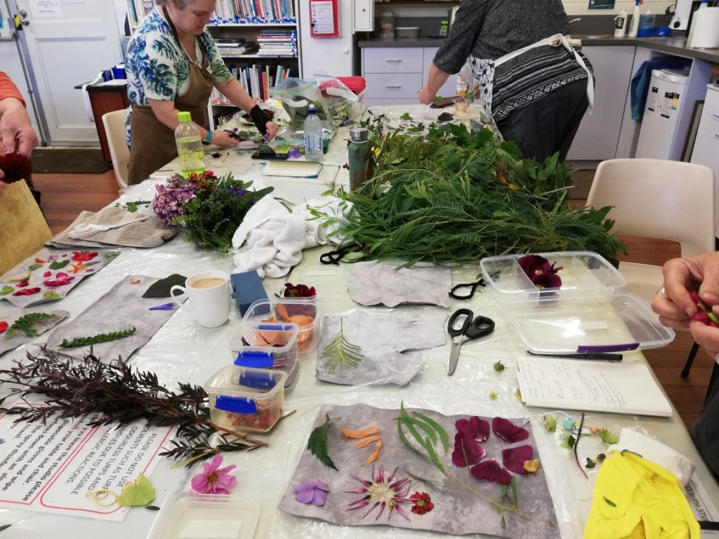 I’d brought along a collection of fresh and dried leaves and flowers and asked the students to do the same.