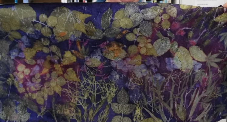 The small samples were our first print and I used these to introduce the students to the different leaves and flowers and how to use a dye blanket to give a coloured background.