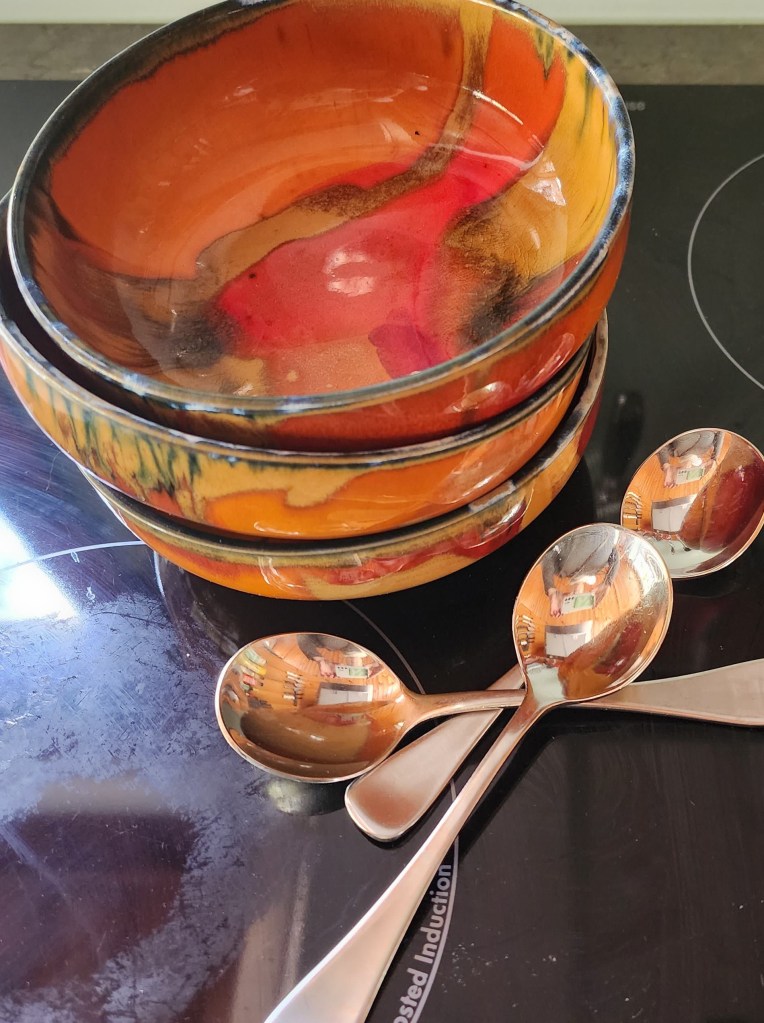 I’m not a big still life artist…nature is my thing…but I have to say I really enjoyed my foray into the ordinary, everyday objects all around us. Here’s a step by step demo I did for my class of my favourite red bowls waiting besides the soup spoons for lunch to be ready.