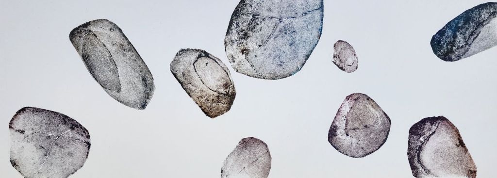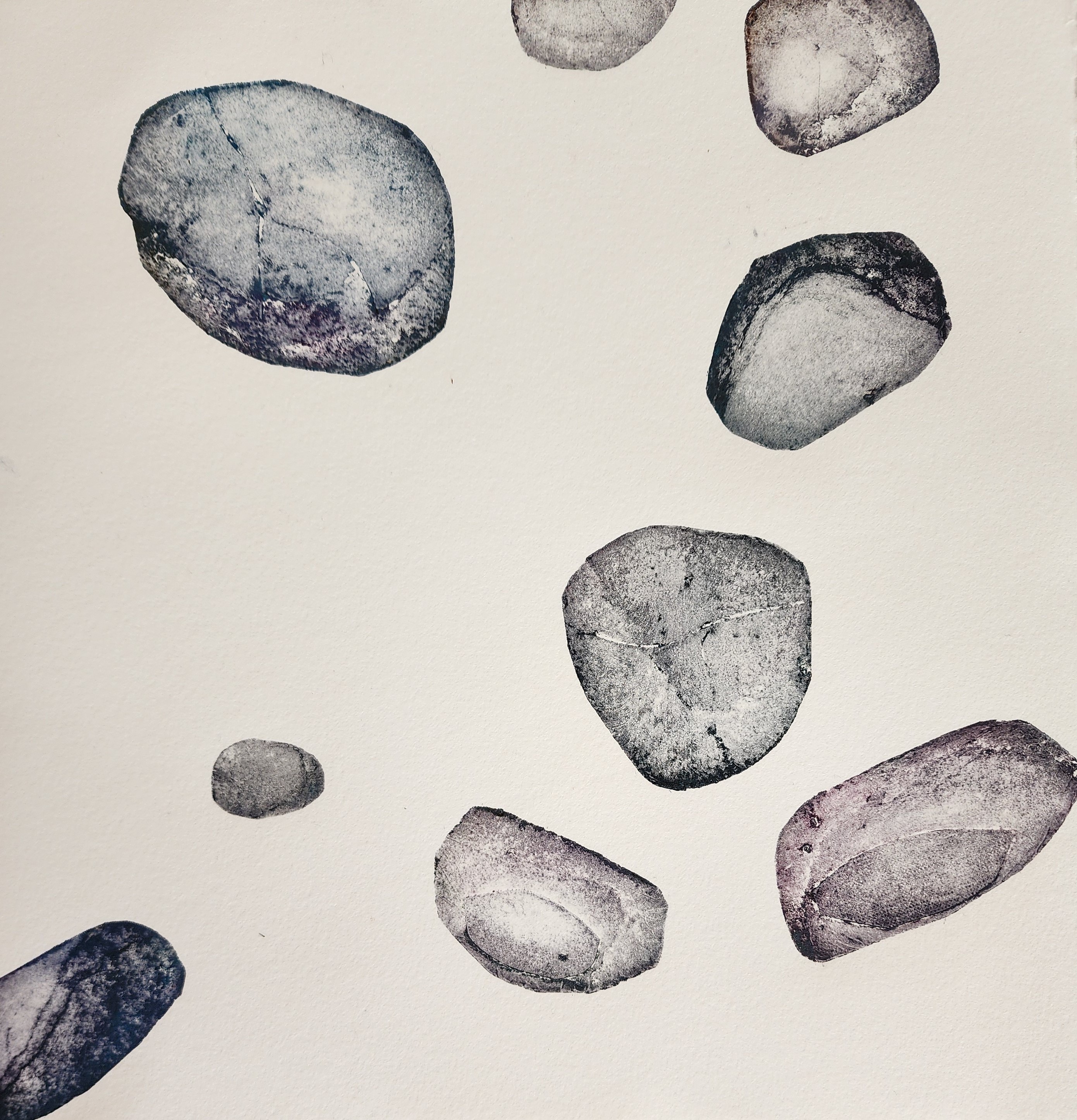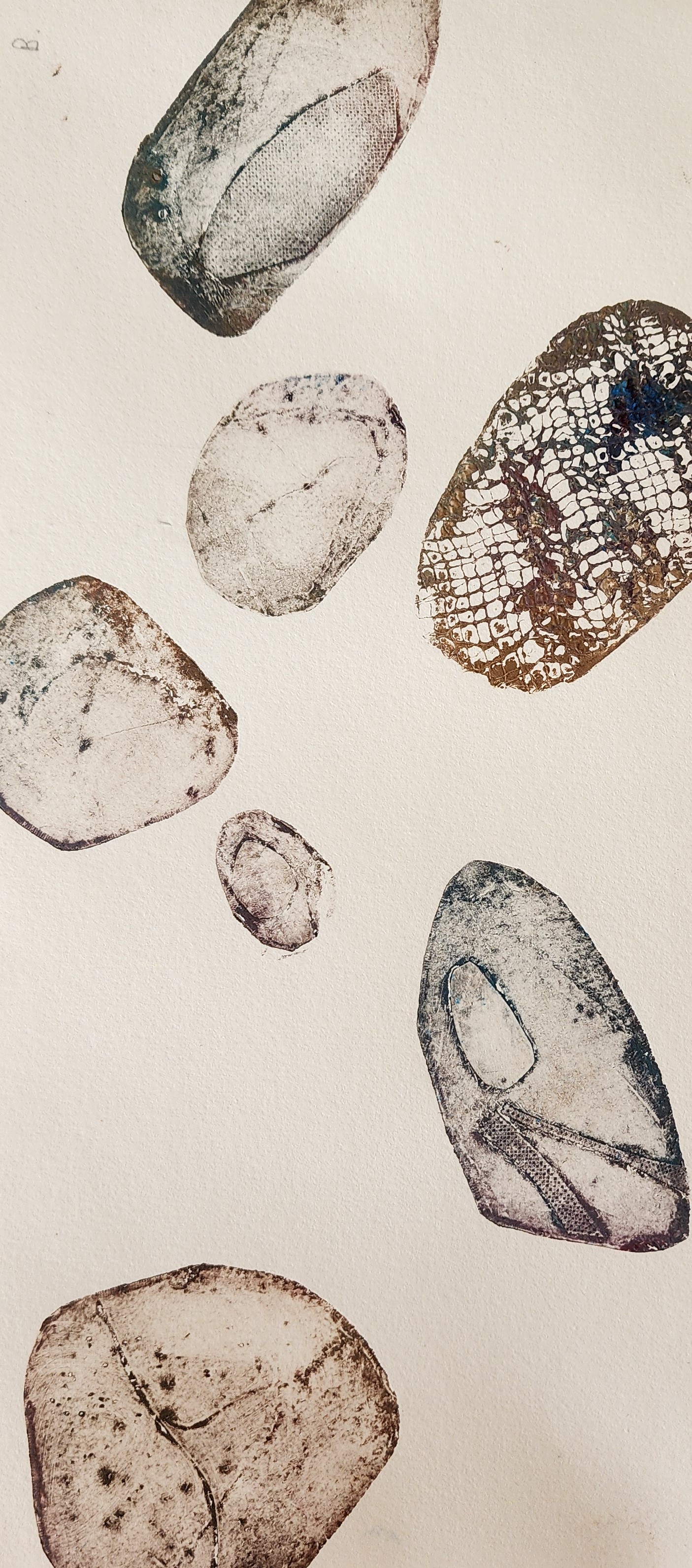 We also looked at using individual small plates to create different groupings for prints. These rock prints were all made using a group of small plates inked in different colours and arranged in different formats.