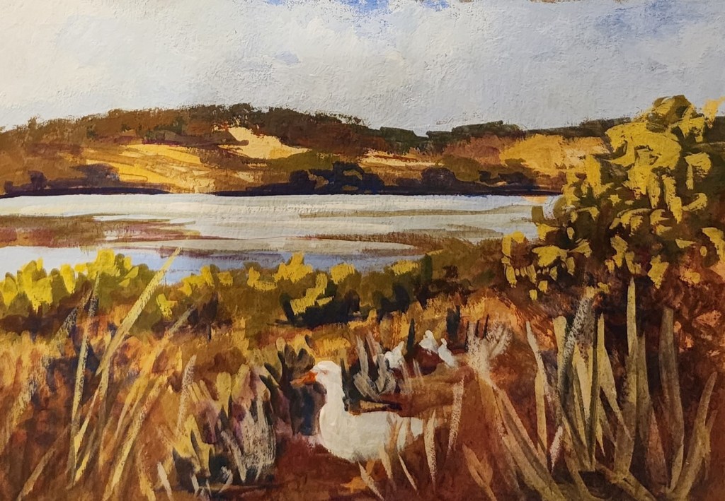 If I upsize this postcard I plan to rework the placement of the geese and aim for them to be a bit more visable without dominating.