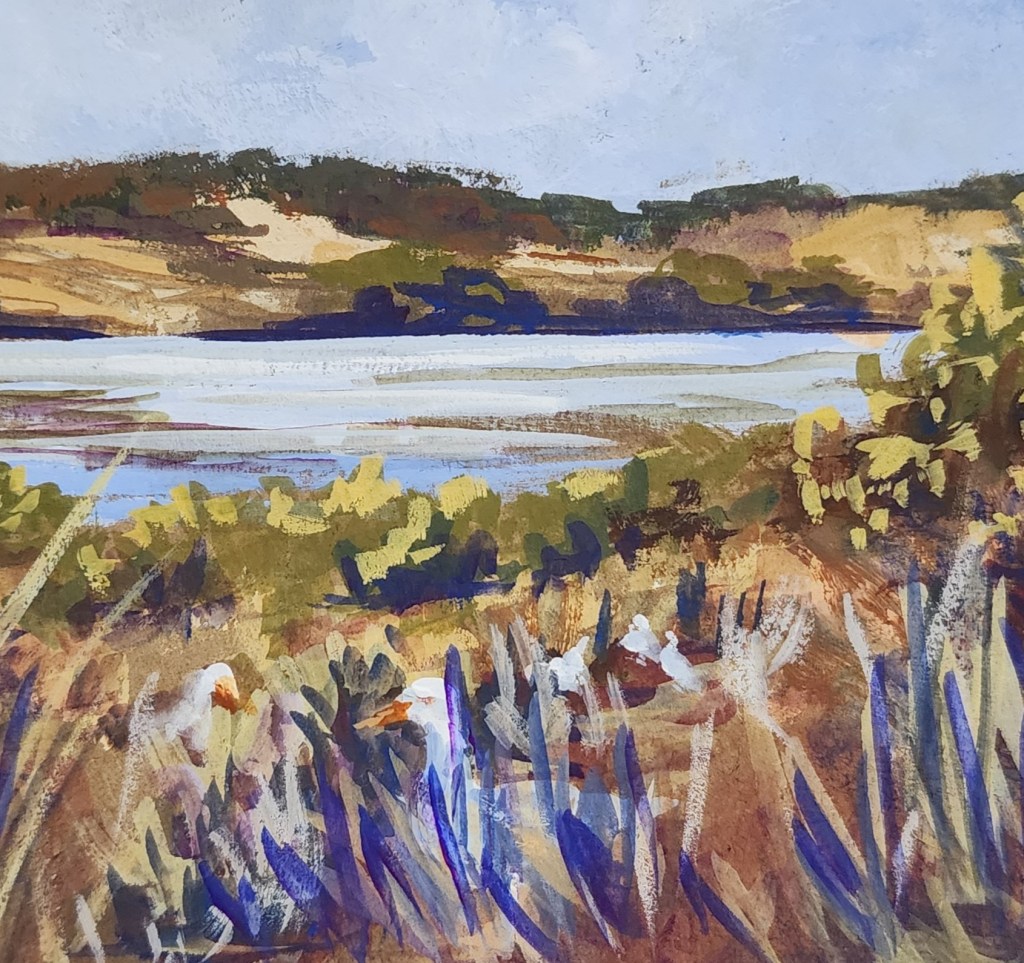 It’s surprising how much I learn from these little postcards. I’m sure my skill level will have dramatically improved after a year of postcards of Life by the River. If you don’t have time, space or materials for large creative projects you can learn just as much from regular, smaller works. It’s not the size that matters it’s how often you practice. Are you a fan of small projects or do you like to go large?