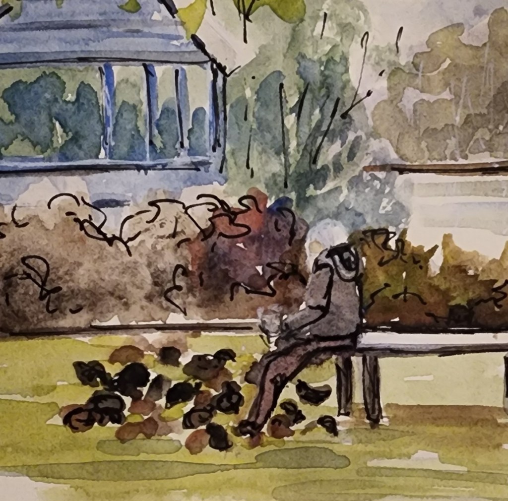 Not a great sketch by any stretch of the imagination but a happy capture of a regular bird feeder. She was only there for a few minutes then back to the car and away.