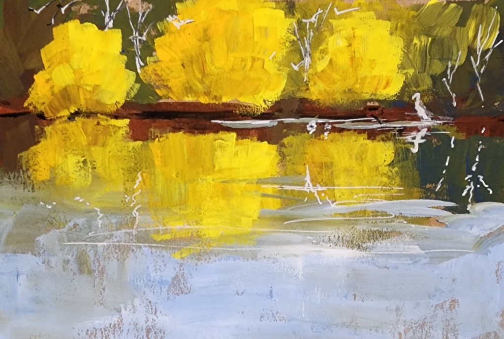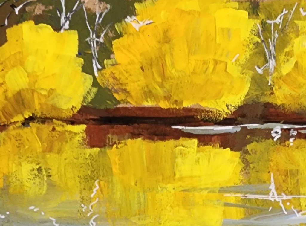 The view across the river on our morning Boardwalk is usually dominated by greens but right now the golden yellows of the wattles are reflecting beautifully.