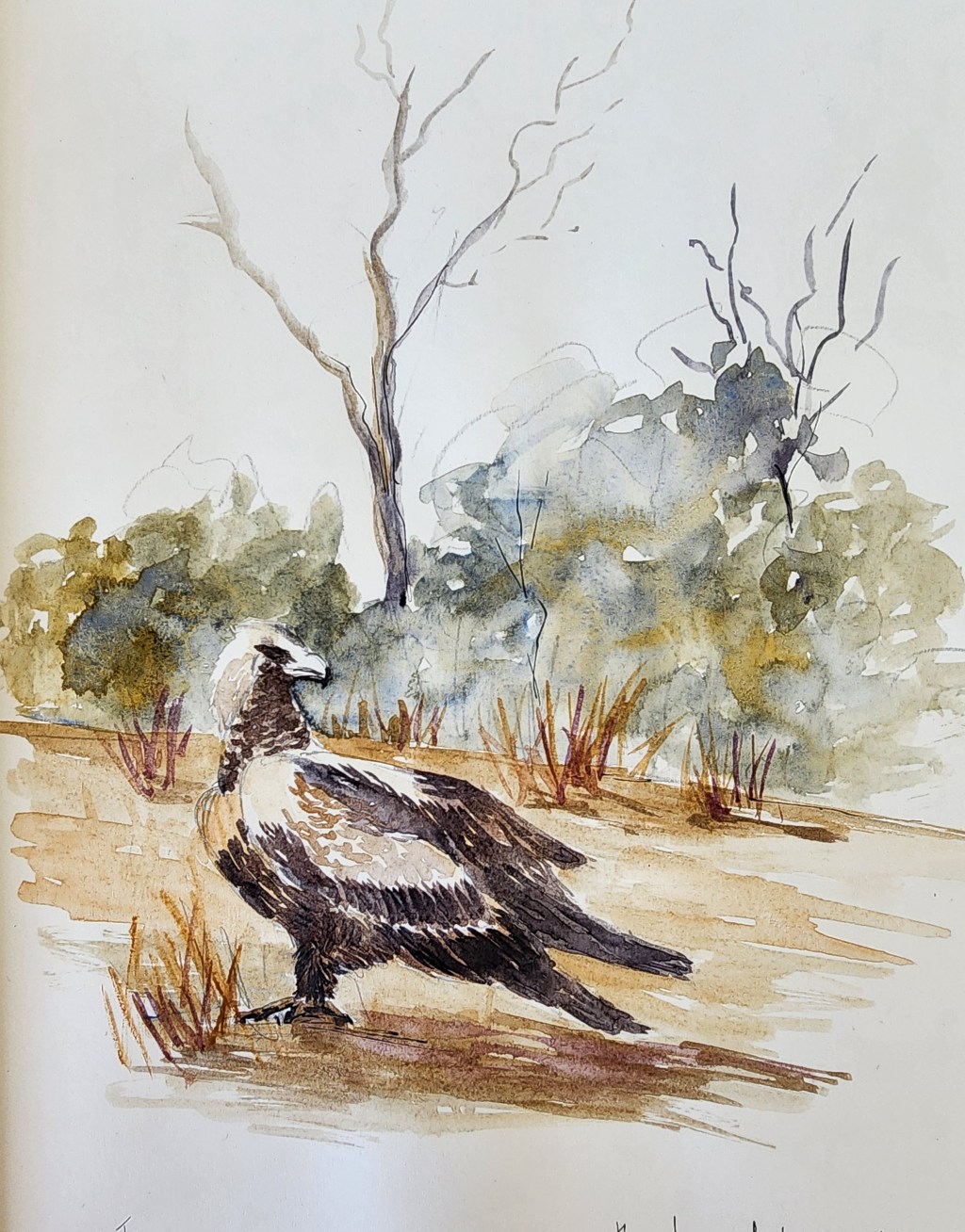 I had forgotten how large these eagles are when they’re on the ground. The golden head, chest and wing feathers of the juvenile really helped it stand out against the greenery on the hillside which is probably why I noticed it so easily.