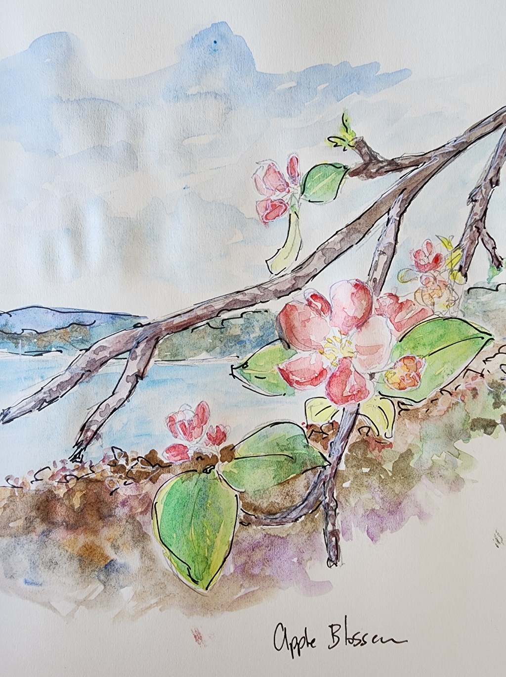 There is a pervasive pink and whiteness along the roadside by the river right now. There are lots of apple trees that have seeded by the roadside and they are all blossoming at the moment. It’s a lovely sight.