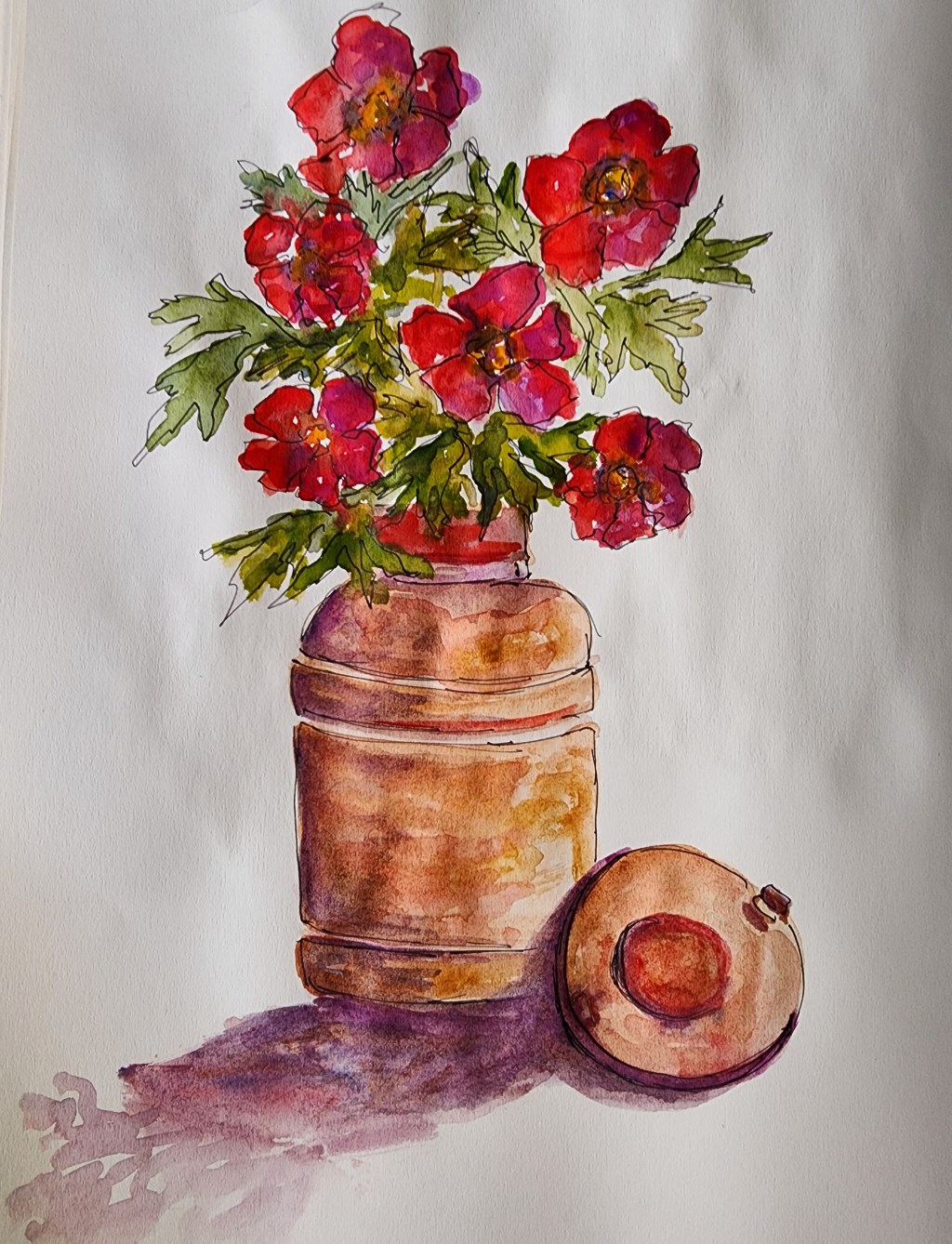 The star today was a huge peony she has sitting in an old milk can. I’ve attempted a sketch but it really does not do it justice.