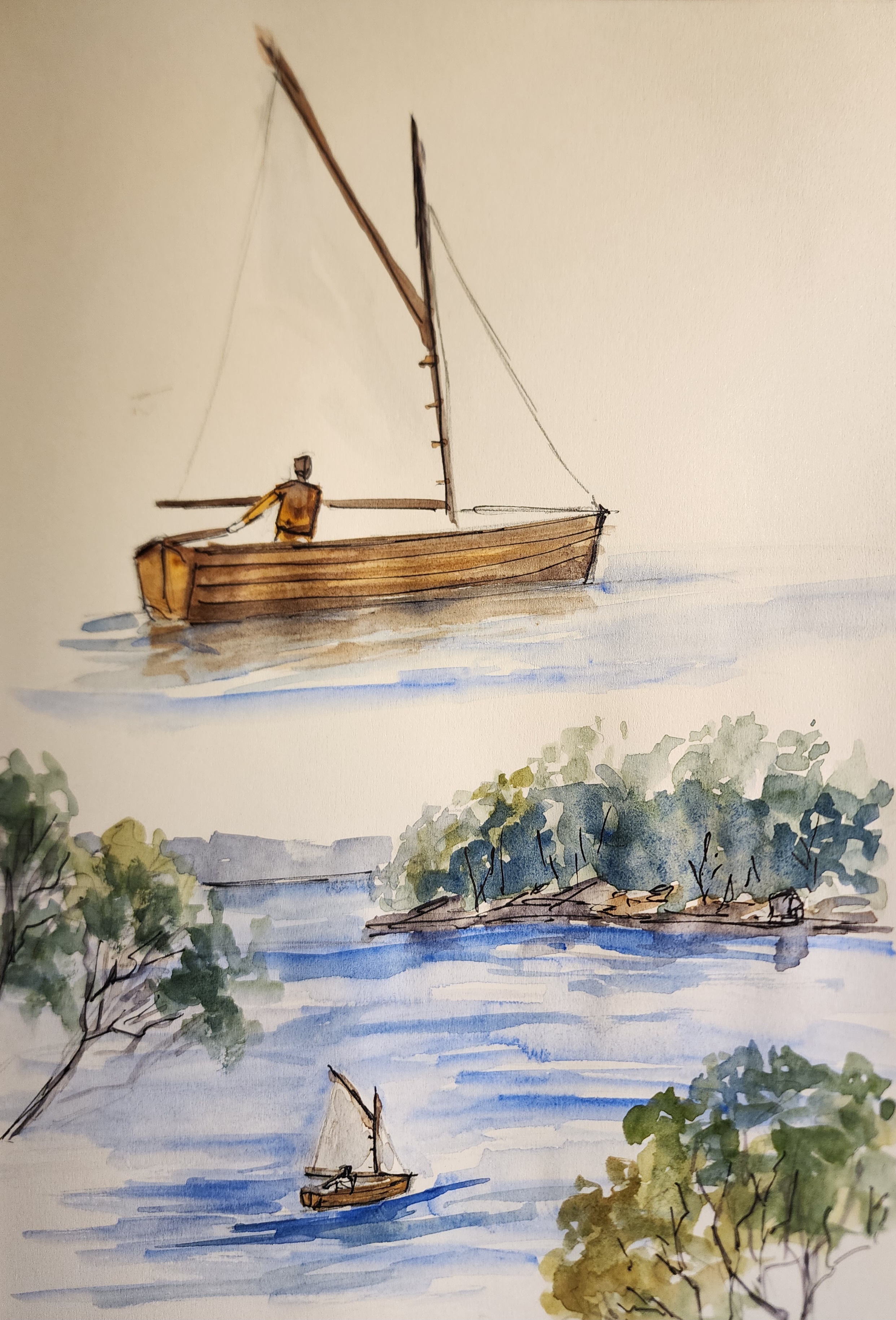 Later on my husband called me to see a boat and there she was, sailing right past our house. How could I not make her the subject for today’s postacard?
